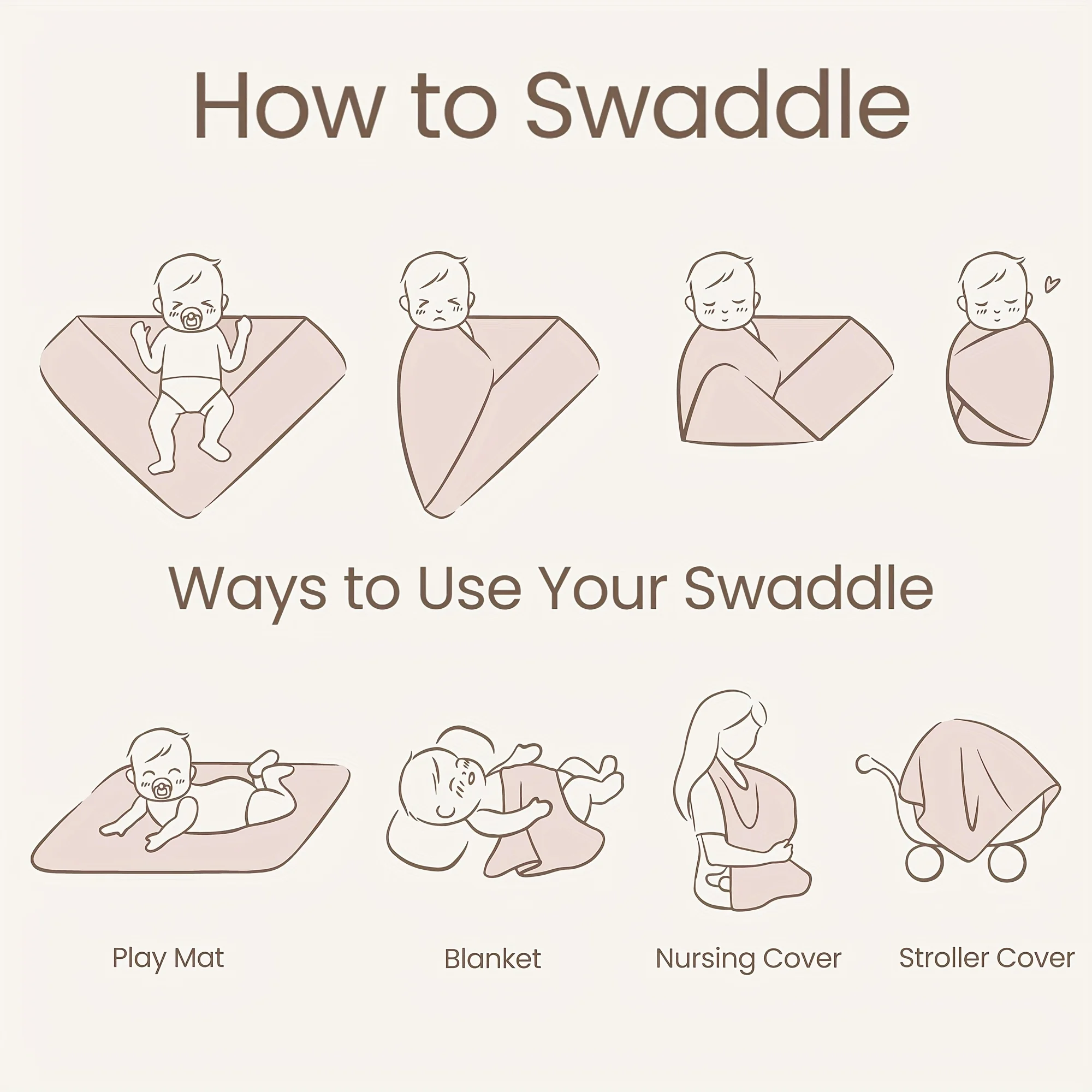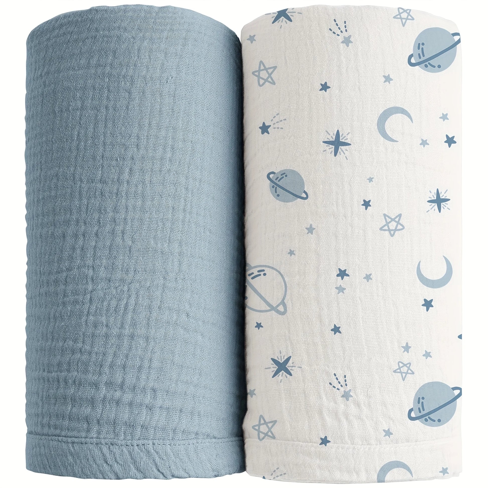 2-Pack Baby Swaddle Blankets, 47x47 Inch Large Breathable Muslin Receiving Swaddles, Universal Design for Newborn Boys and Girls