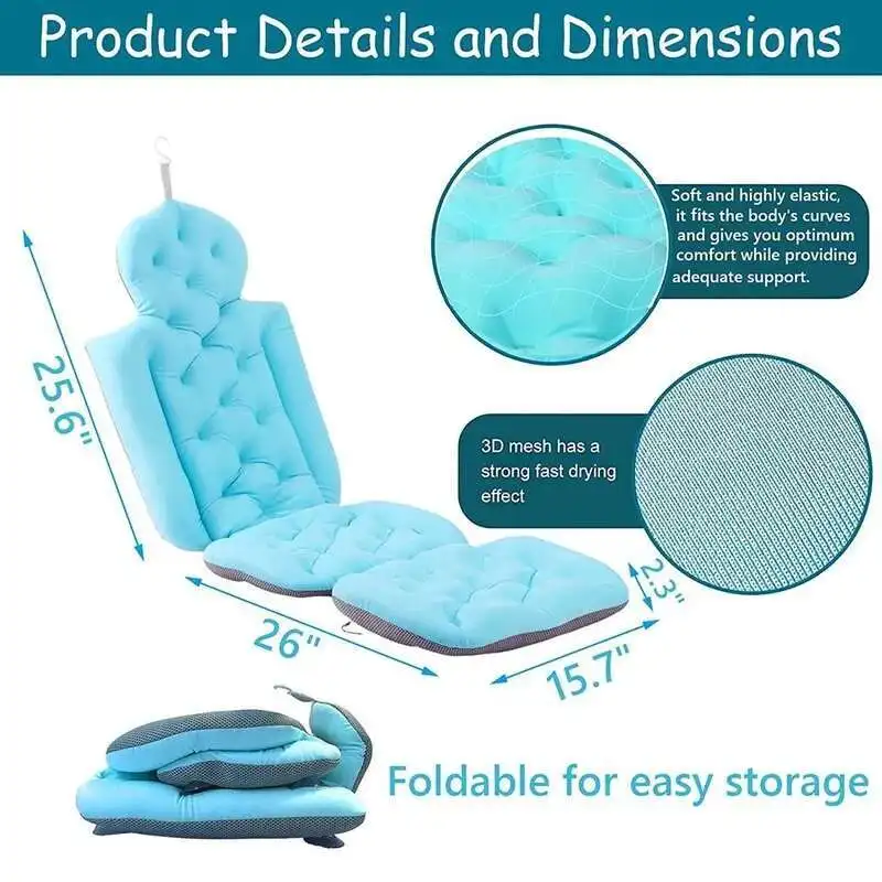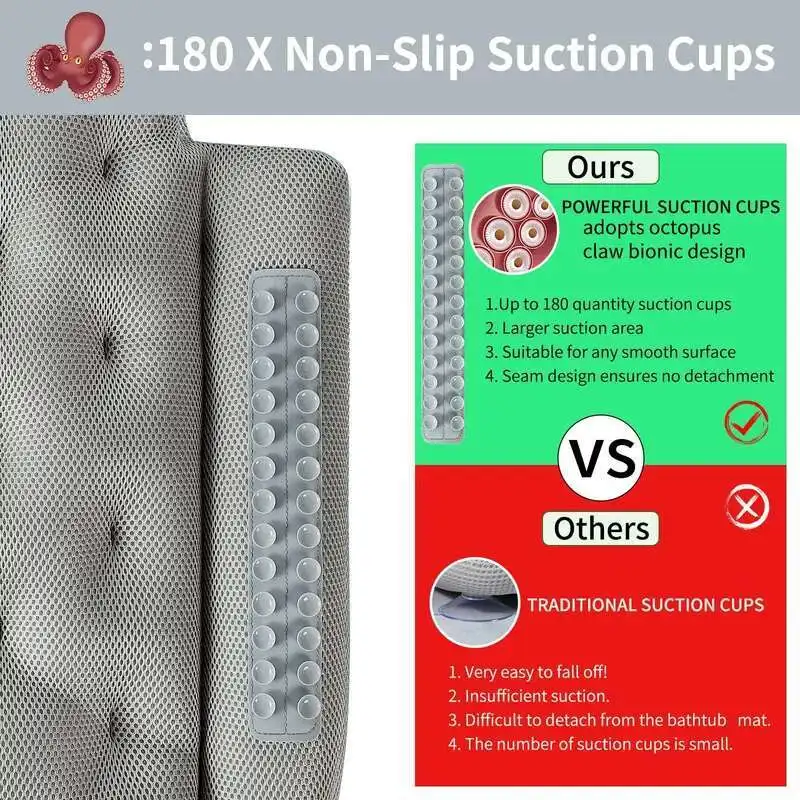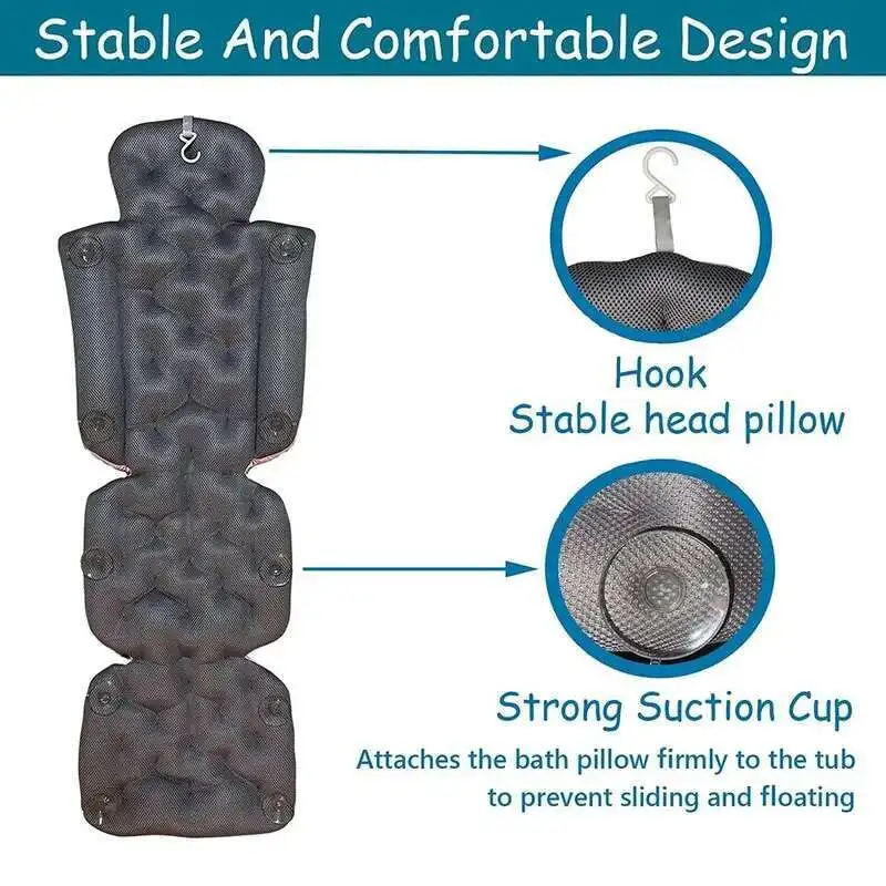 Full Body Bath Pillow for Bathtub Shower Tub Non-slip Suction Cups 3D Air Mesh Quick Drying Ergonomic Headrest Cushion