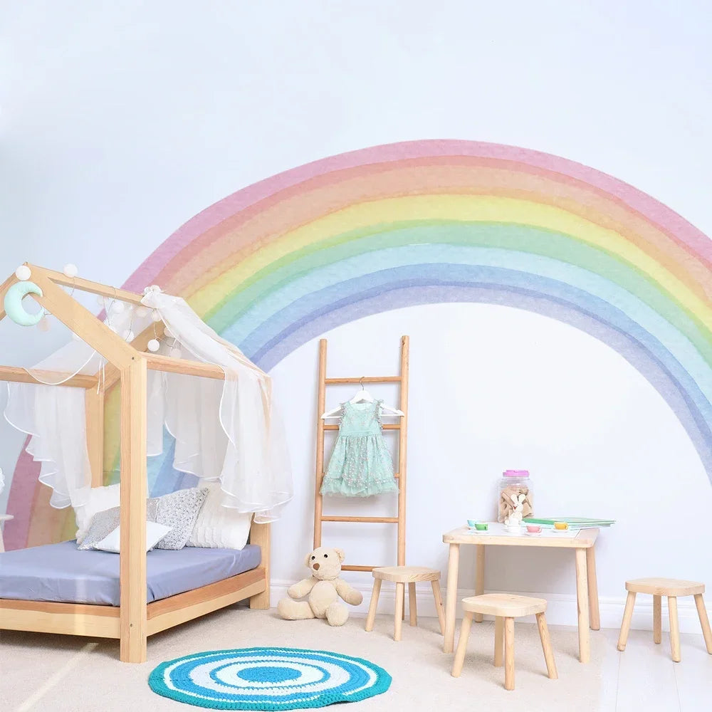 Large Rainbow Pastel Wall stickers Mural Nursery Kids Room Wall Decals Baby Shower Playroom Decorations Baby Boy Girl Gift Tiles